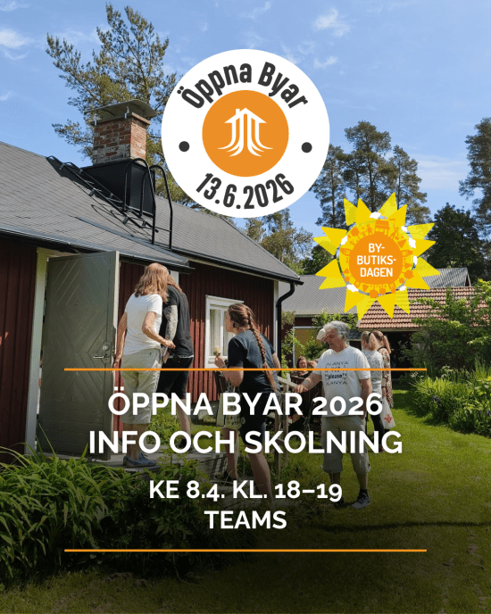 Informationstillfälle om Öppna byars dag samt Bybutiksdagen ordnas digitalt den 8 april kl 18-19. Anmäl dig här för att få en Teams-länk till tillfället.