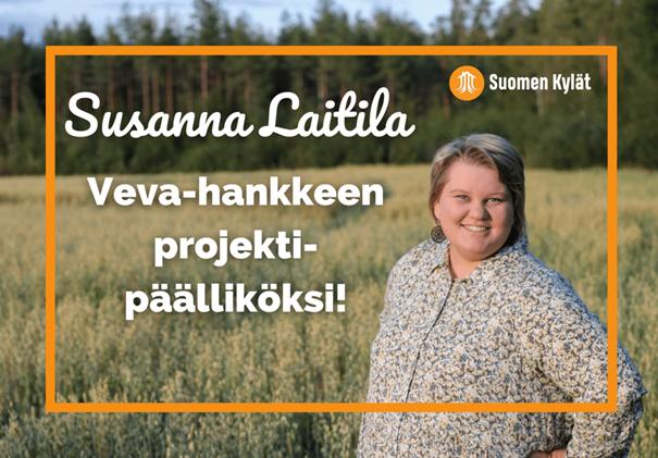 Susanna Laitila, från Seinäjärvi by i Alavo, valdes till projektledare för Veva-projektet (Vetovoimainen ja vastaanottava kylä-hanke 2022). Hon inledde sitt arbete inom teamet för Finlands Byar den 1 september. Laitila slutför nu sina studier vid Vasa universitet och blir snart klar med sin magisterexamen i förvaltningsvetenskap.
