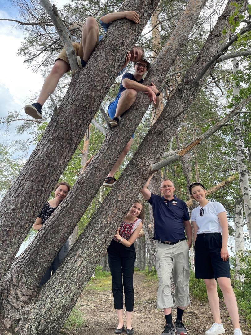 Personal vid enheten för Landsbygdsnätverkstjänsterna med Teemu Hauhia (andra från höger)
