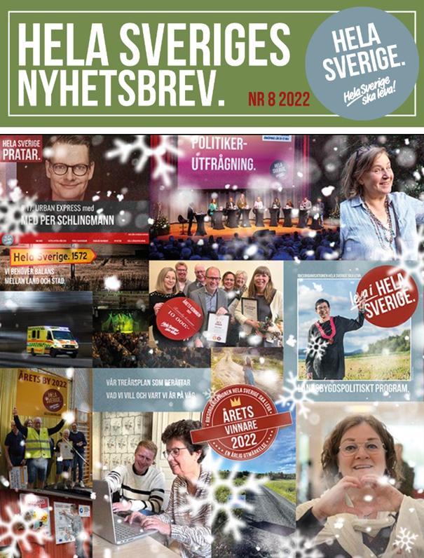 I Riksorganisationen Hela Sverige ska levas (HSSL:s) åttonde och sista nyhetsbrev för i år gör man tolv tillbakablickar på landsbygdsåret som gått. Läs om skiftbytet i tomteverkstan och stjärnor som lyser upp, om spad och sill och det som glimmar i granen, eller varför inte öppna HSSL:s julkalender? Man ersätter rödbetssallad med Ris á la Malta och ledsagas av tre vise män (varav en kvinna).