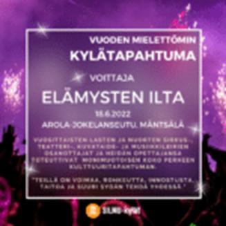 I år ville SILMU-byar förnya tävlingen Årets byabedrift i östra Nyland och belöna ett lyckat byaevenemang i stället, och till vinnare valdes enhälligt Elämysten ilta i Arola-Jokelanseutu, Mäntsälä. Motivering: evenemanget är innovativt och kreativt, verksamheten är långsiktig, människor i olika åldrar har beaktats väl och evenemanget inkluderar både kultur och sport. Hjärtliga gratulationer till alla som gör kvällen möjlig!