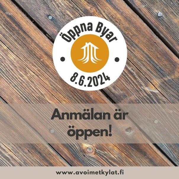 Vi bjuder in er by till den riksomfattande byafesten, som arrangeras för tionde gången den 8 juni 2024! På Öppna Byarnas dag öppnar byarna sina dörrar och arrangerar ett mångsidigt program. Öppna Byar samlar cirka 150 000 besökare till byarna, vilket gör det till Finlands största byaevenemang. Öppna Byar är en oförglömlig dag, fylld med lokal kultur, gemenskap och upplevelser.