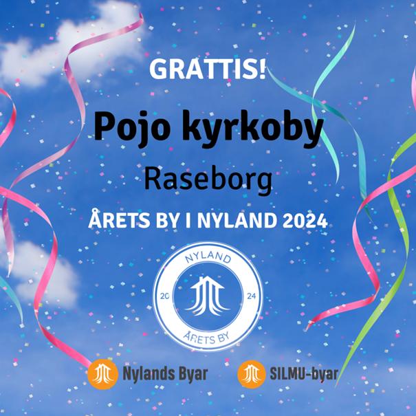 Årets by i Nyland 2024 är Pojo kyrkoby i Raseborg, västra Nyland. I urvalsjuryns motiveringar lades vikt vid den ansenliga mängden, samt betydelsefulla verksamheten, som idkats i byn. Det satsas på ungdomen och atmosfären präglas av en positiv tvåspråkighet. Byn arbetar i nära samarbete med Raseborg stad, med andra byar, samt med byns övriga föreningar, företag och andra som verkar inom området. Pojo kyrkoby byförening gjorde initiativet som ledde till att ett byaforum grundades i Raseborg. Juryn gav också beröm åt byns aktiva och mångsidiga informationsverksamhet.
