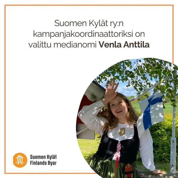 Medianom Venla Anttila har valts till kampanjkoordinator på deltid för Finlands Byar. Kampanjkoordinatorn genomför kommunikationsprojektet Kylien Ääni 2024 och hjälper Finlands Byar i kampanj- och kommunikationsprojekt under sommarsäsongen, kommunicerade om exempelvis byaturism och idylliska sommarbyar. Anttila var en av de fem populära sociala medier-influensers som deltog i organisationen Vaikuttaja Kylässä-exkursionen i juni 2023 i byarna i Södra Österbotten.