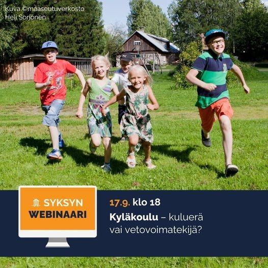 Finlands Byars första webbinarium för hösten hålls den 17 september kl. 18 och har rubriken Kyläkoulu – kuluerä vai vetovoimatekijä? (Byskola – utgiftspost eller attraktionsfaktor?).