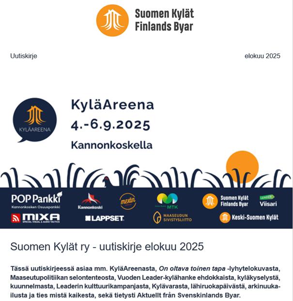 Finlands Byars Uutiskirje för augusti 2025 finns att läsas på webbplatsen suomen-kylat-ry.creamailer.fi.