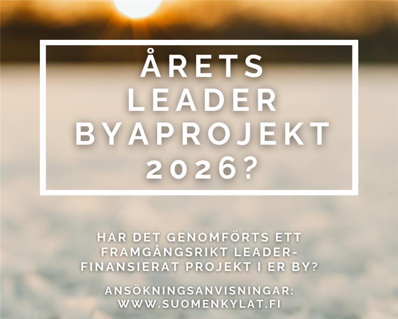 Finlands Byars styrelse utser Årets Leader-Byaprojekt vid sitt möte i mars. Vinnaren offentliggörs och premieras vid Kyläpäivät (de nationlla Byadagarna) den 21.4.2026 i Riihimäki.